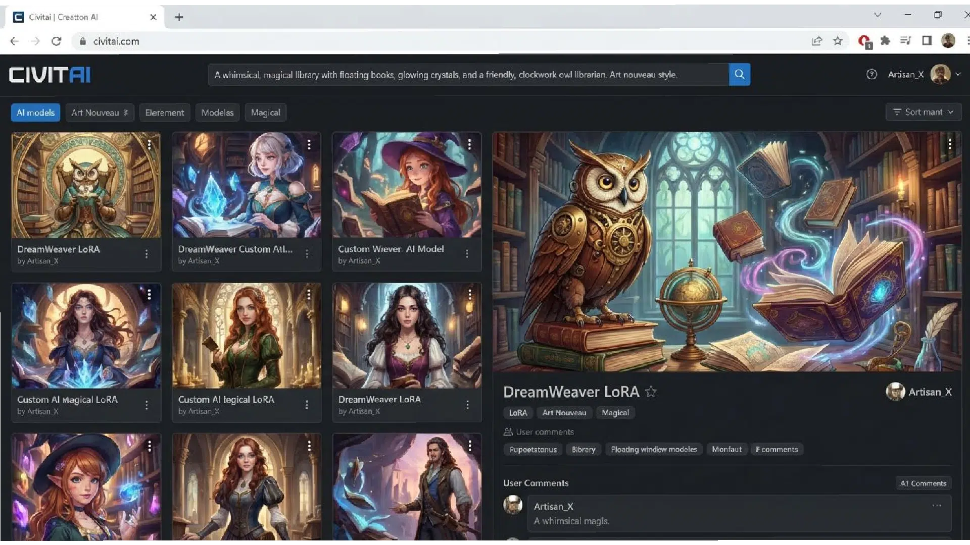 Civitai: این وبسایت یک گنجینه است! یک کتابخانه عظیم از مدلهای سفارشی که توسط کاربران ساخته شدهاند. شما میتوانید مدلی برای تولید یک سبک هنری خاص یا حتی چهره یک شخصیت معروف پیدا و دانلود کنید.